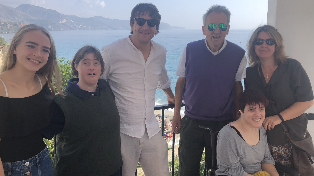 A shared lives household on holiday. Photo taken from balcony of hotel.