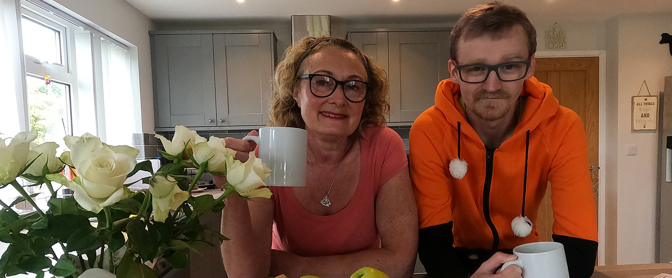 DCIM100GOPROGOPR0239.JPG A Shared Lives Carer and person supported enjoying a cup of coffee in the kitchen