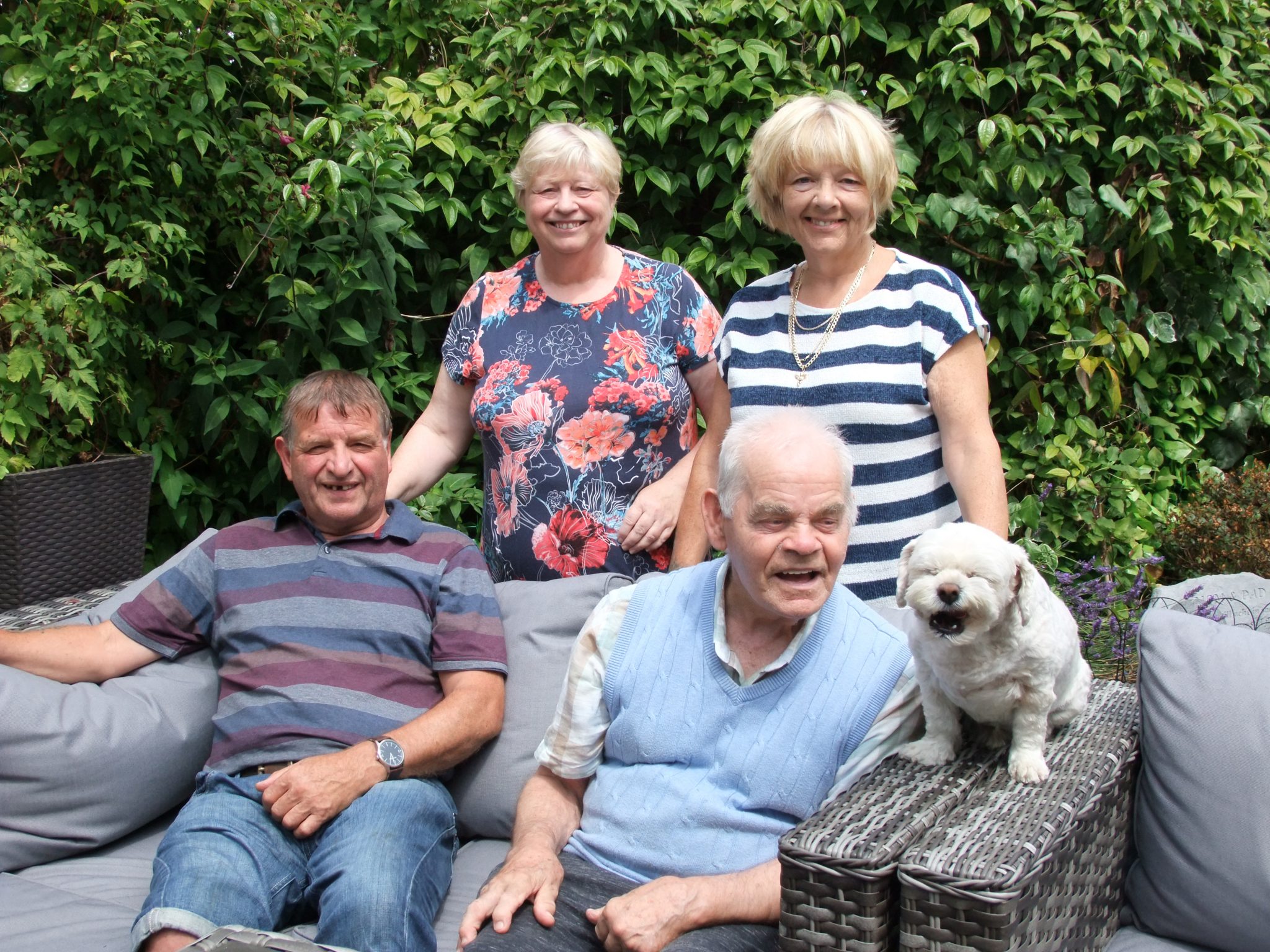 debbie rowsell, richard holland, Colin pg 24-25 A shared lives household pictured outside in the garden with their dog