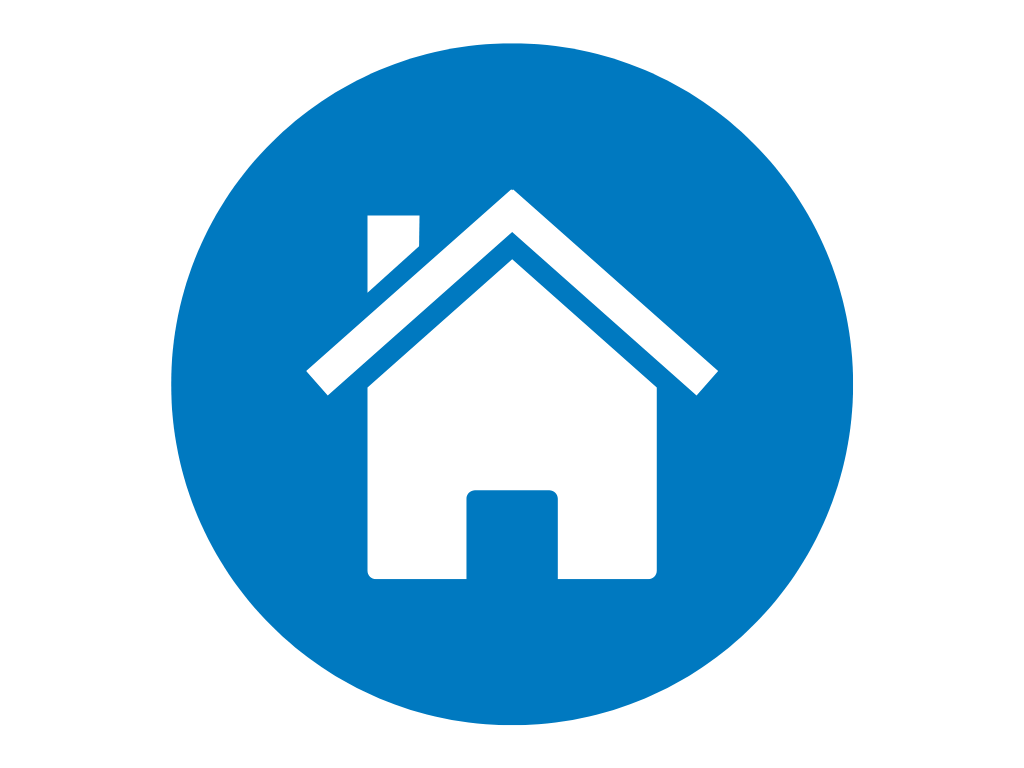 icon- blue circle with a white house in the centre